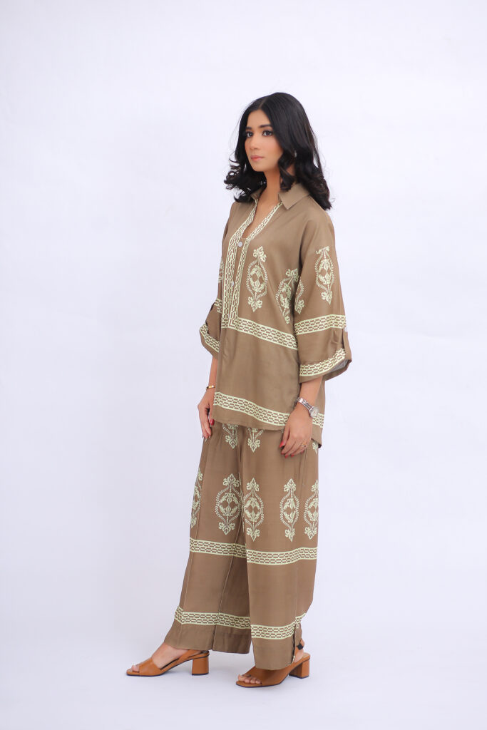 Lightweight yet elegant, the fabric drapes effortlessly, offering all-day comfort with a refined finish.
