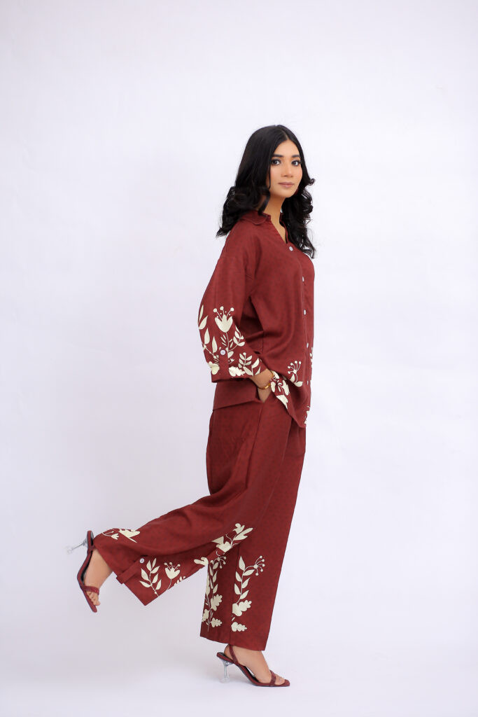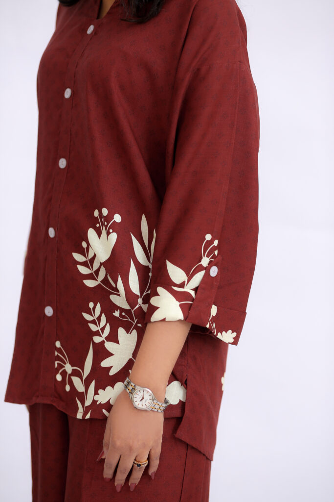 Lightweight yet elegant, the fabric drapes effortlessly, offering all-day comfort with a refined finish.